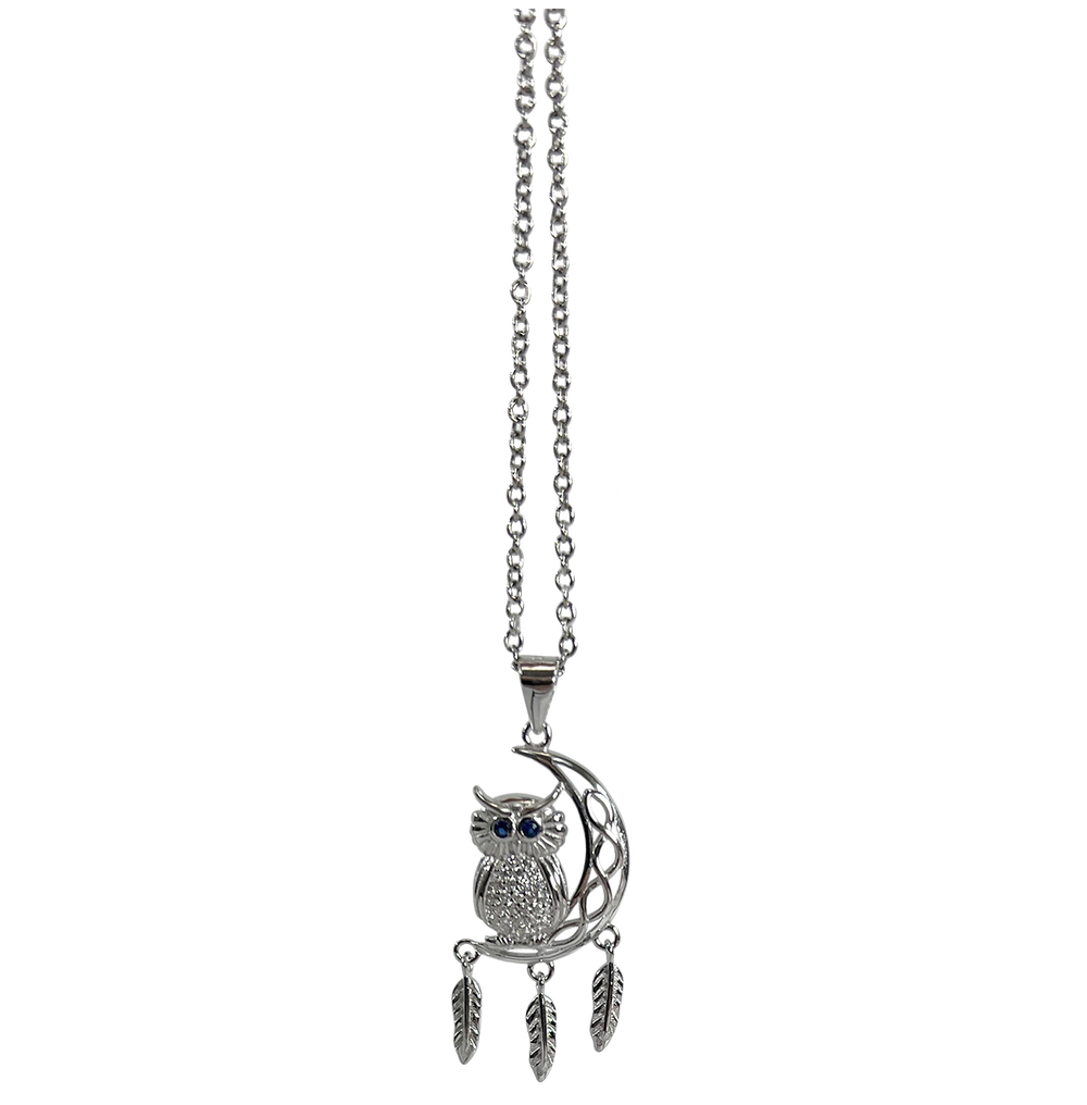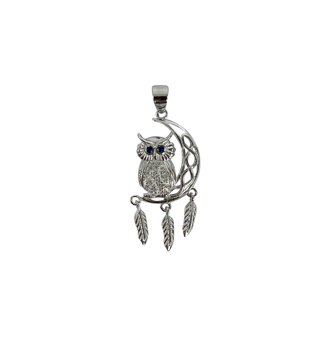 Sterling Silver Pendant Owl Blue Tiger Eye