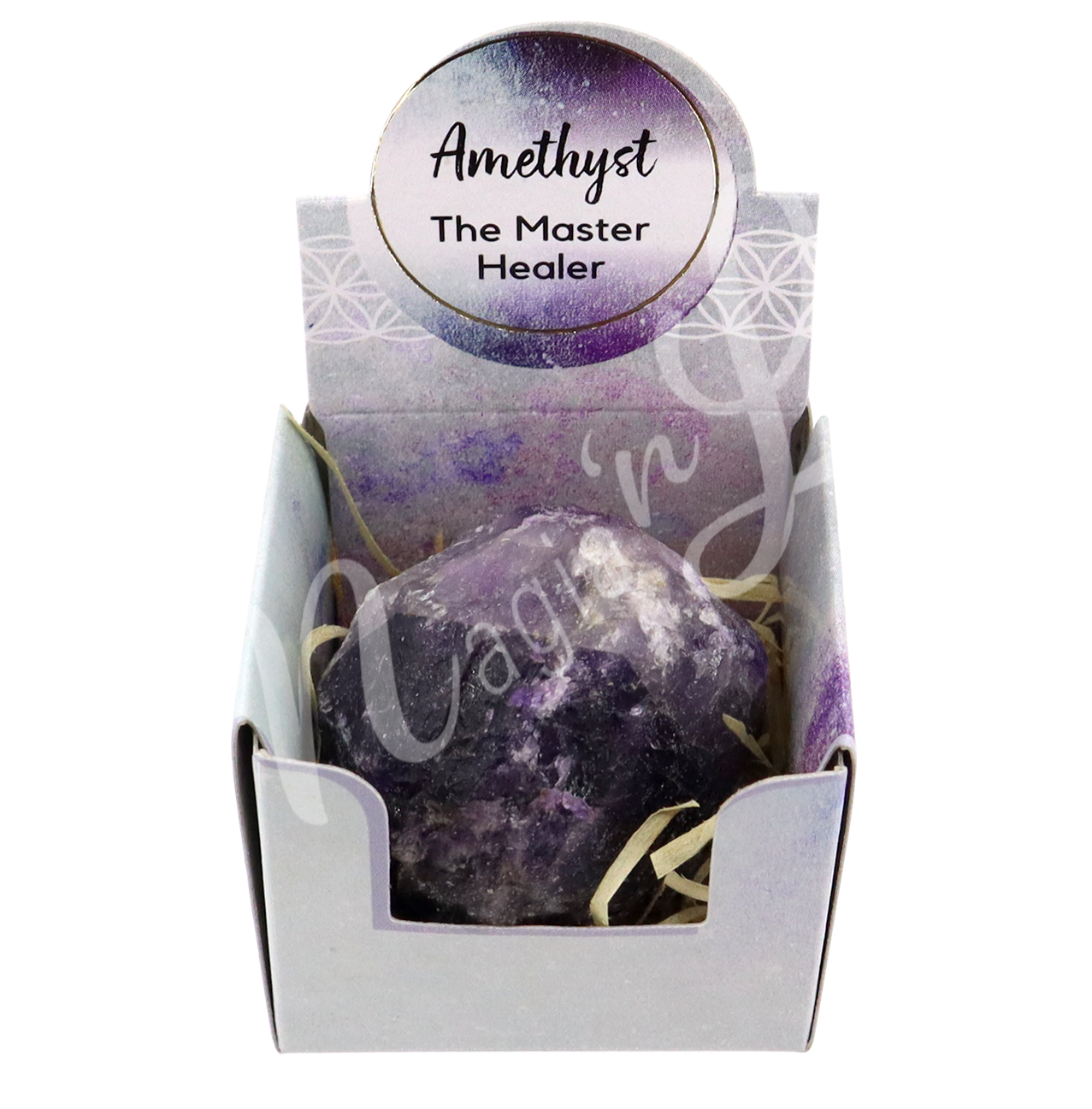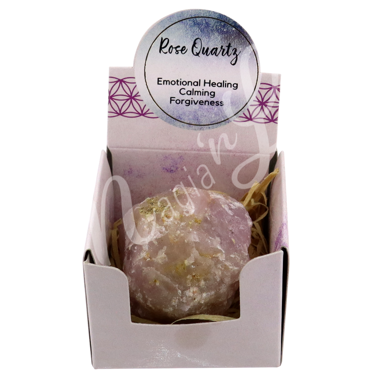Each healing stone is beautifully presented in a gift box and includes a sticker highlighting its unique properties.