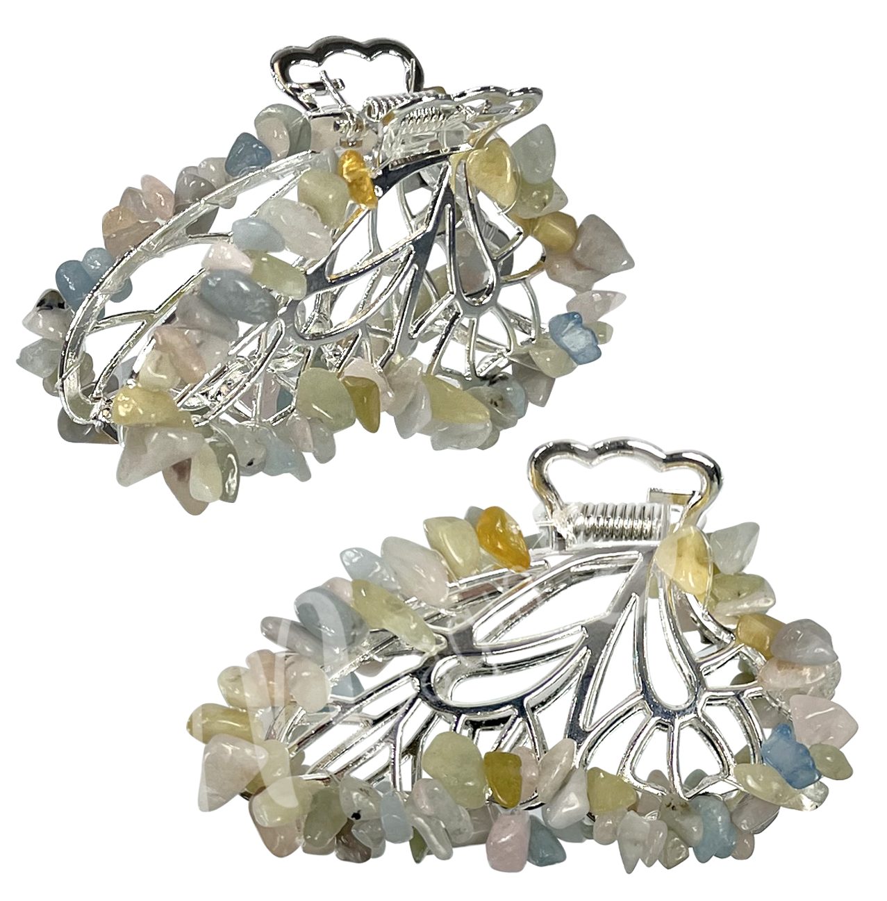 Wearing semi-precious stones in hair clips allows their energy to flow near the crown chakra, promoting spiritual awareness, clarity, and energetic balance. Because the head is a point of connection between the physical and subtle bodies, stone-infused accessories can subtly influence intuition, mood, and protection throughout the day.