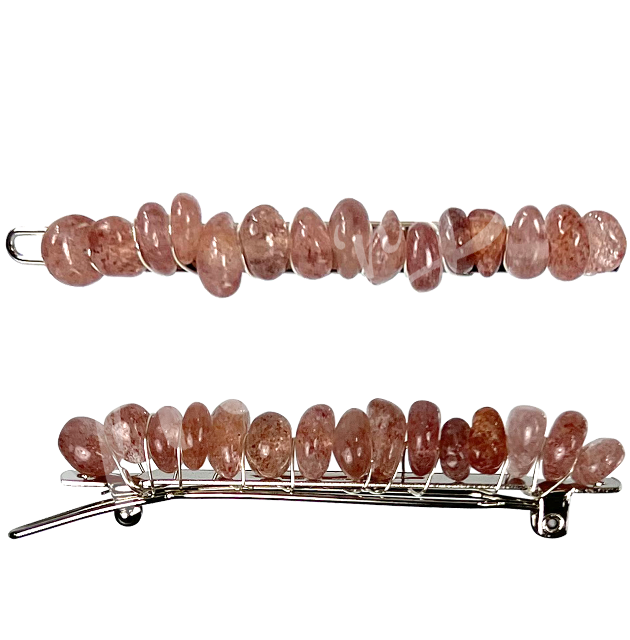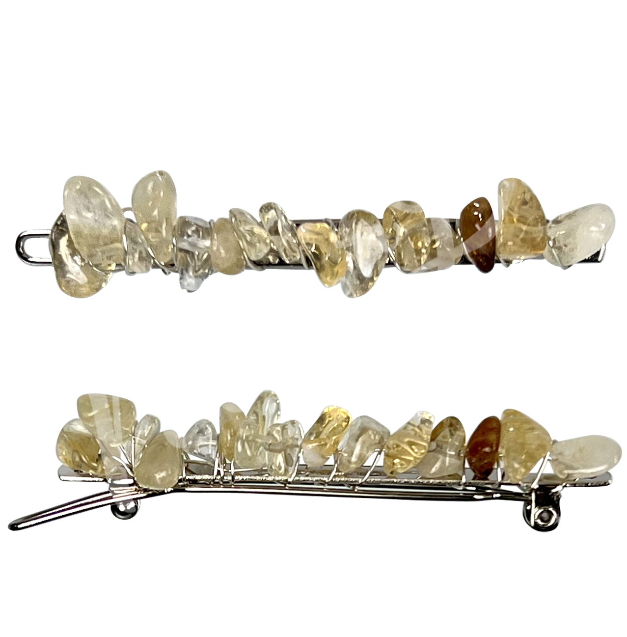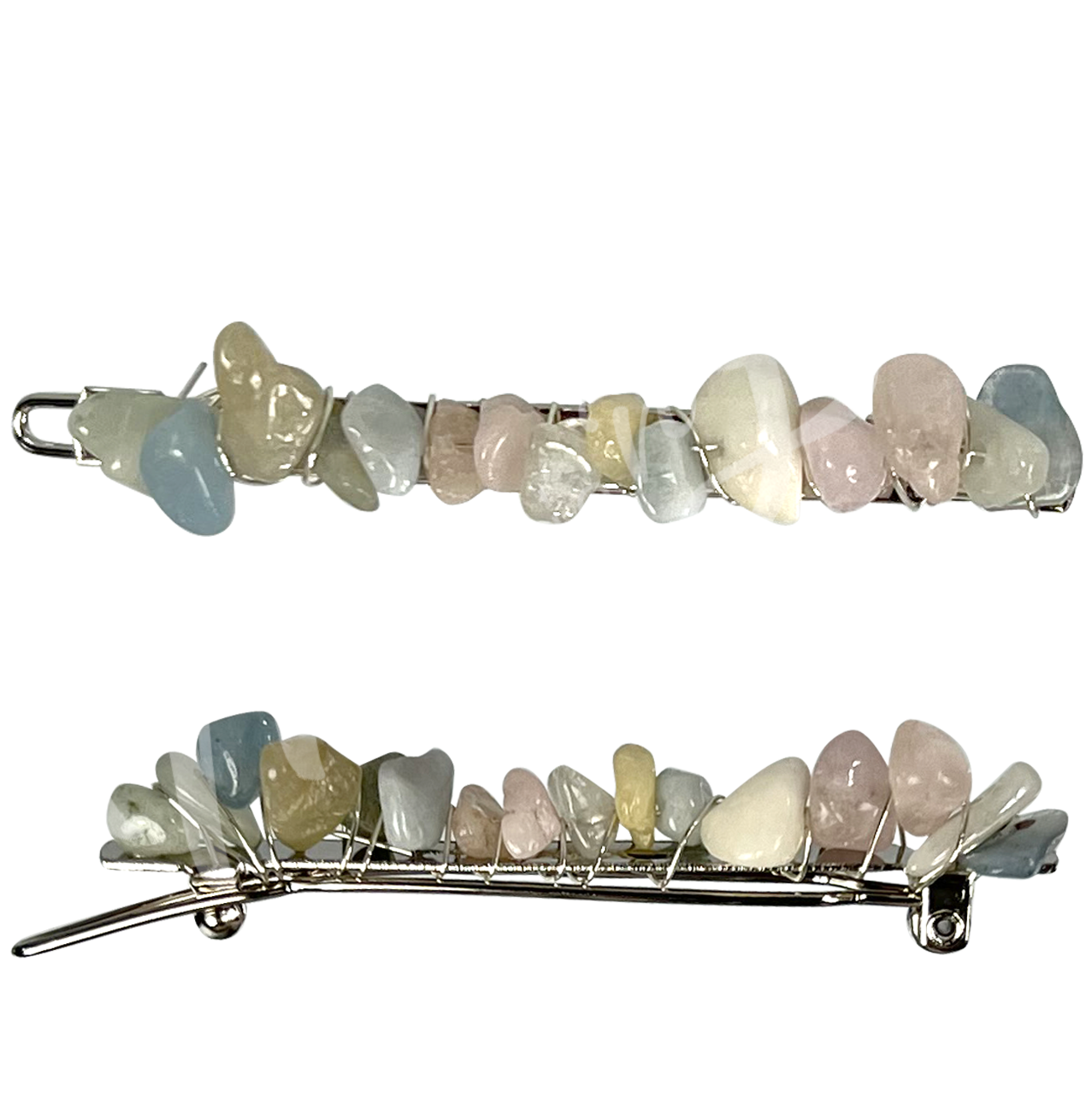 Wearing semi-precious stones in hair clips allows their energy to flow near the crown chakra, promoting spiritual awareness, clarity, and energetic balance. Because the head is a point of connection between the physical and subtle bodies, stone-infused accessories can subtly influence intuition, mood, and protection throughout the day.