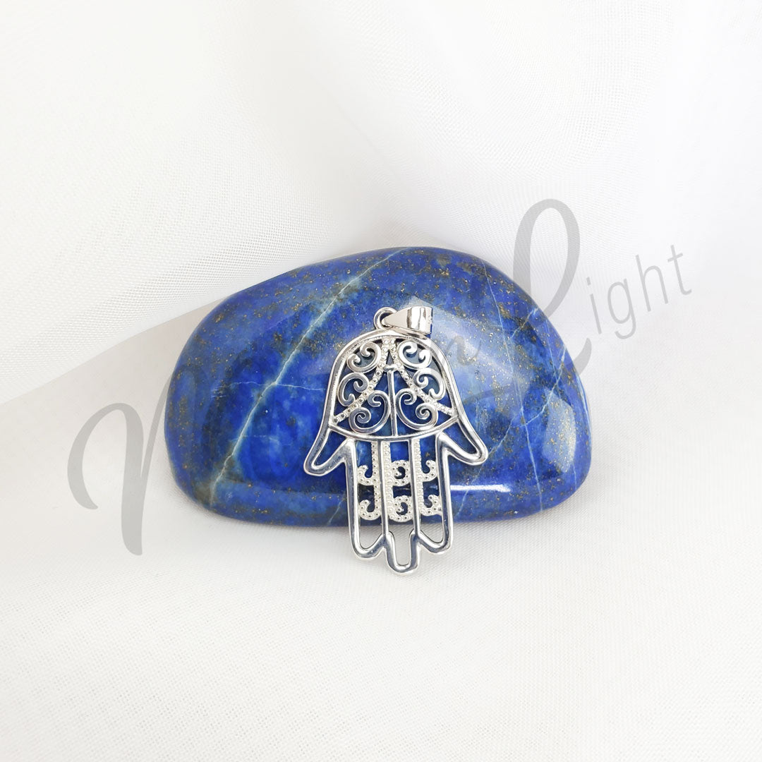In Judaic cultures, this emblem is known as the Hamsa. The meaning is similar, often used as an amulet to ward off the evil eye and bring the wearer health, abundance, good luck and happiness.