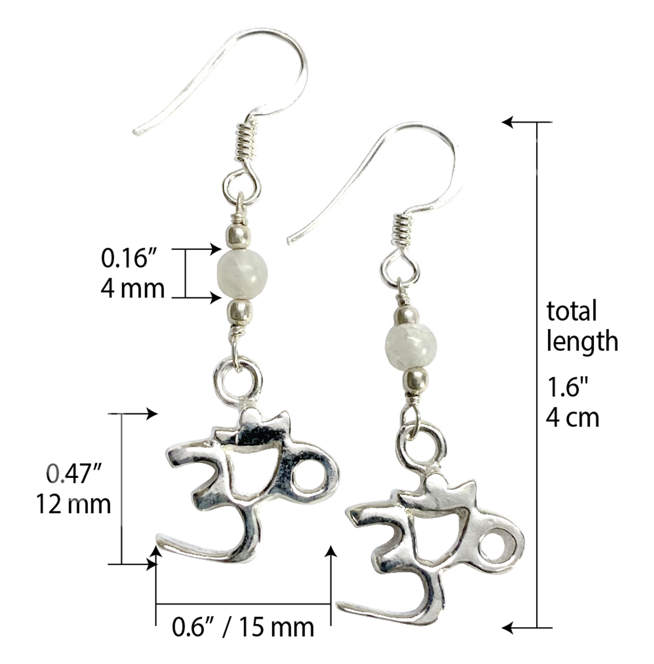 This pair of earring is shaped into OM symbols and is adorned with Rainbow Moonstone beads.