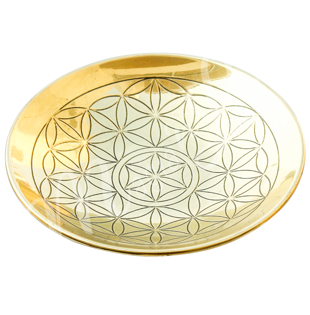 Placa/Soporte de Vidrio para Esfera con Flor de la Vida 10"diá.