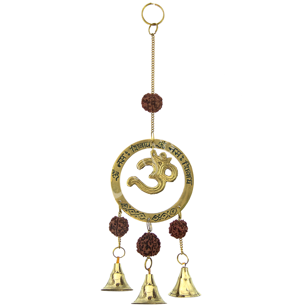 Colgante de Madera Impresa OM en Loto con Punta y Cuentas