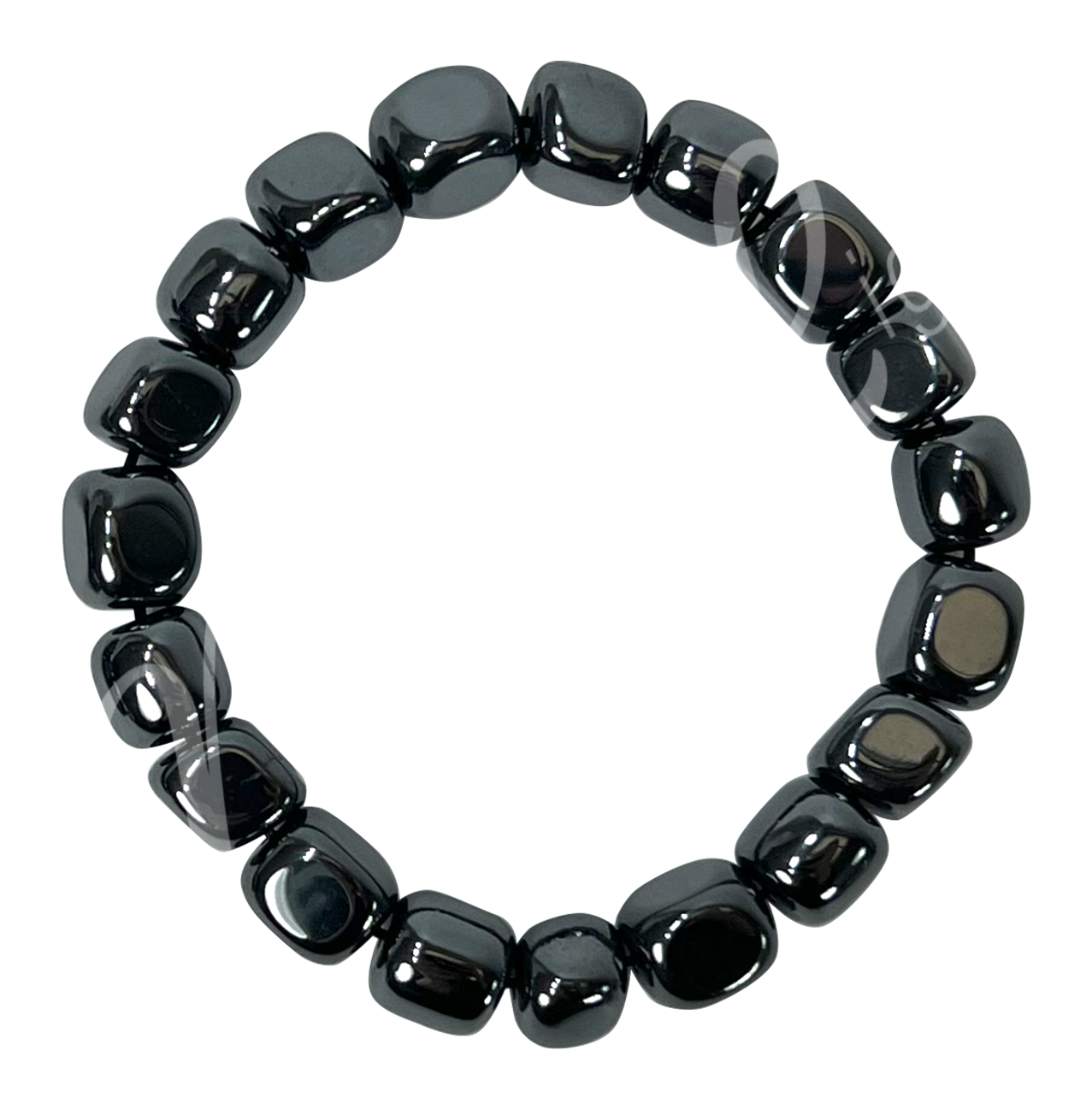 Pulsera elástica de cuentas redondas elaborada con piedras naturales de Hematites.