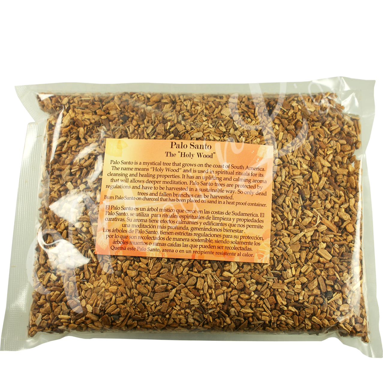 Esta bolsa contiene 0,25 libras de chips de Palo Santo de 2-5 mm.