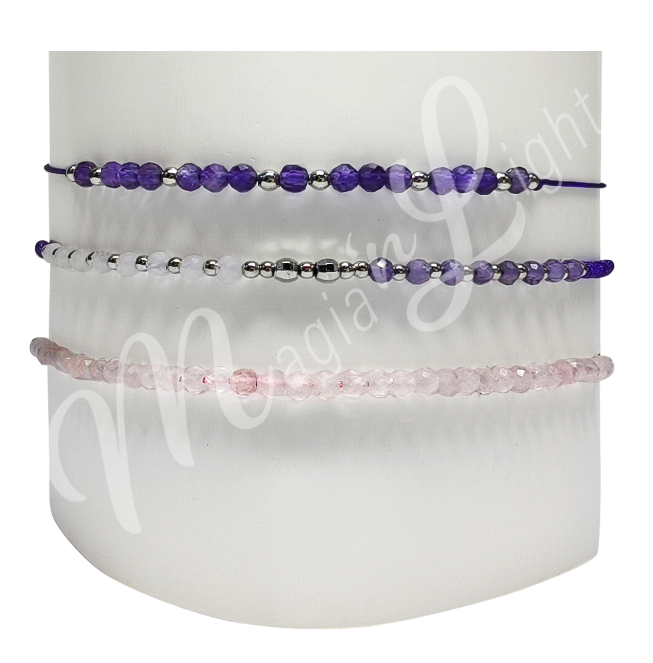 Bracelet Adjustable Amethyst & Rose Quartz (3 mm) 6-10.6" (set of 3)